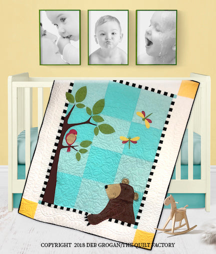 Buddy Bear is an adorable quilt perfect for baby. Dimensional ears add a fun element to this quilt, a must have for any baby. Our easy to piece and appliqué quilt pattern includes instructions and templates.