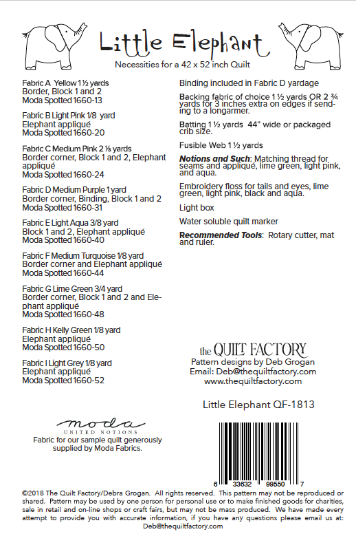 ©2023 The Quilt Factory/Debra Grogan. All rights reserved. This pattern may not be reproduced or shared. Pattern may be used by one person for personal use or to make finished goods for charities, sale in retail and on-line shops or craft fairs, but may not be mass produced. We have made every attempt to provide you with accurate information, if you have any questions please email us at: Deb@thequiltfactory.com