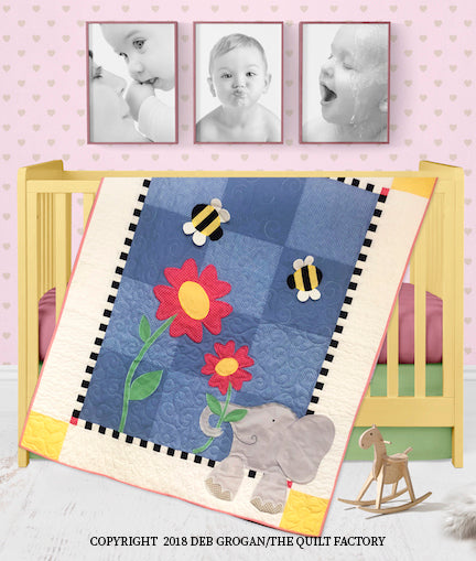 Eloise Elephant is an adorable quilt perfect for baby. Dimensional ears add a fun element to this quilt, a must have for any baby. Our easy to piece and appliqué quilt pattern includes instructions and templates.