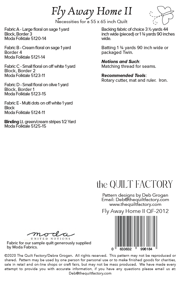 ©2021 The Quilt Factory/Debra Grogan. All rights reserved. This pattern may not be reproduced or shared. Pattern may be used by one person for personal use or to make finished goods for charities, sale in retail and on-line shops or craft fairs, but may not be mass produced. We have made every attempt to provide you with accurate information, if you have any questions please email us at: Deb@thequiltfactory.com