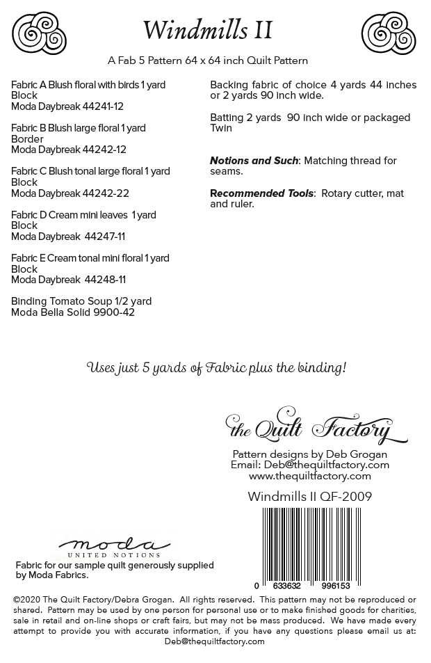 ©2021 The Quilt Factory/Debra Grogan. All rights reserved. This pattern may not be reproduced or shared. Pattern may be used by one person for personal use or to make finished goods for charities, sale in retail and on-line shops or craft fairs, but may not be mass produced. We have made every attempt to provide you with accurate information, if you have any questions please email us at: Deb@thequiltfactory.com
