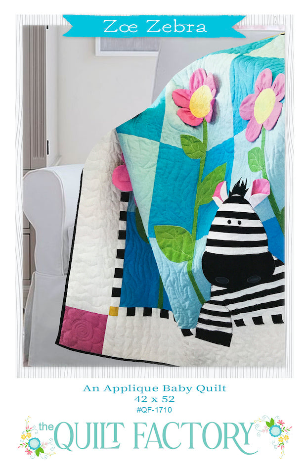 Zoe Zebra is an adorable quilt perfect for that trendy baby. Dimensional ears and flower petals make this quilt a must have for any baby. Our easy to piece and appliqué quilt pattern includes instructions and templates.
